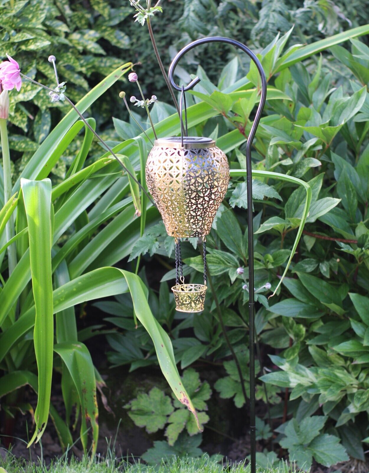 Add a touch of elegance to your outdoor space with these stunning Silhouette Solar Lanterns. Made of metal filigree, these lanterns are not only decorative but also functional. They feature a white LED powered by an integrated solar panel, making them energy-efficient and environmentally friendly. Simply place them in direct sunlight and watch as they automatically turn on at dusk, casting beautiful silhouettes wherever they are positioned.