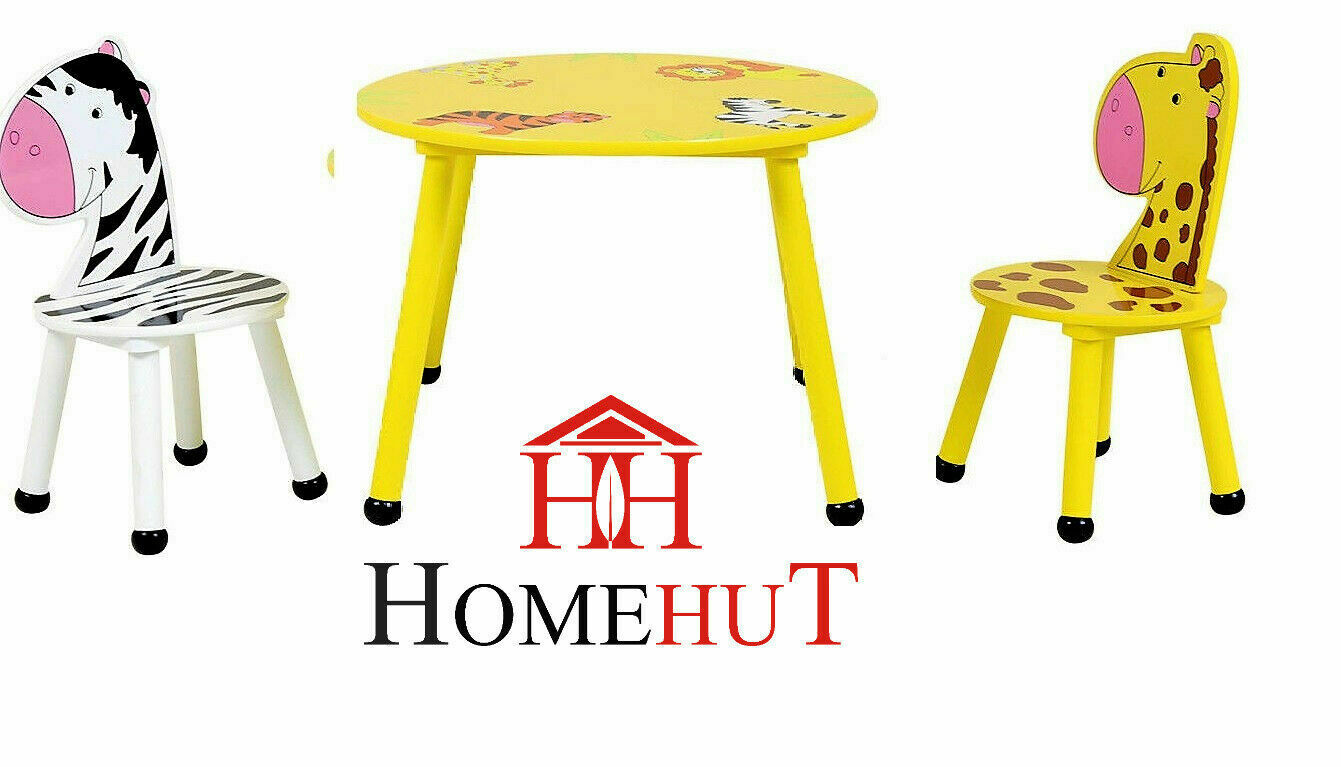 A delightful set of table and chairs ideal for children aged from 3-6 years. Sturdy and hard wearing they are perfect for a child's bedroom/playroom or nursery. Each table comes with a giraffe and zebra chair... you can order the other two chairs which comprise of a Lion and a Tiger.