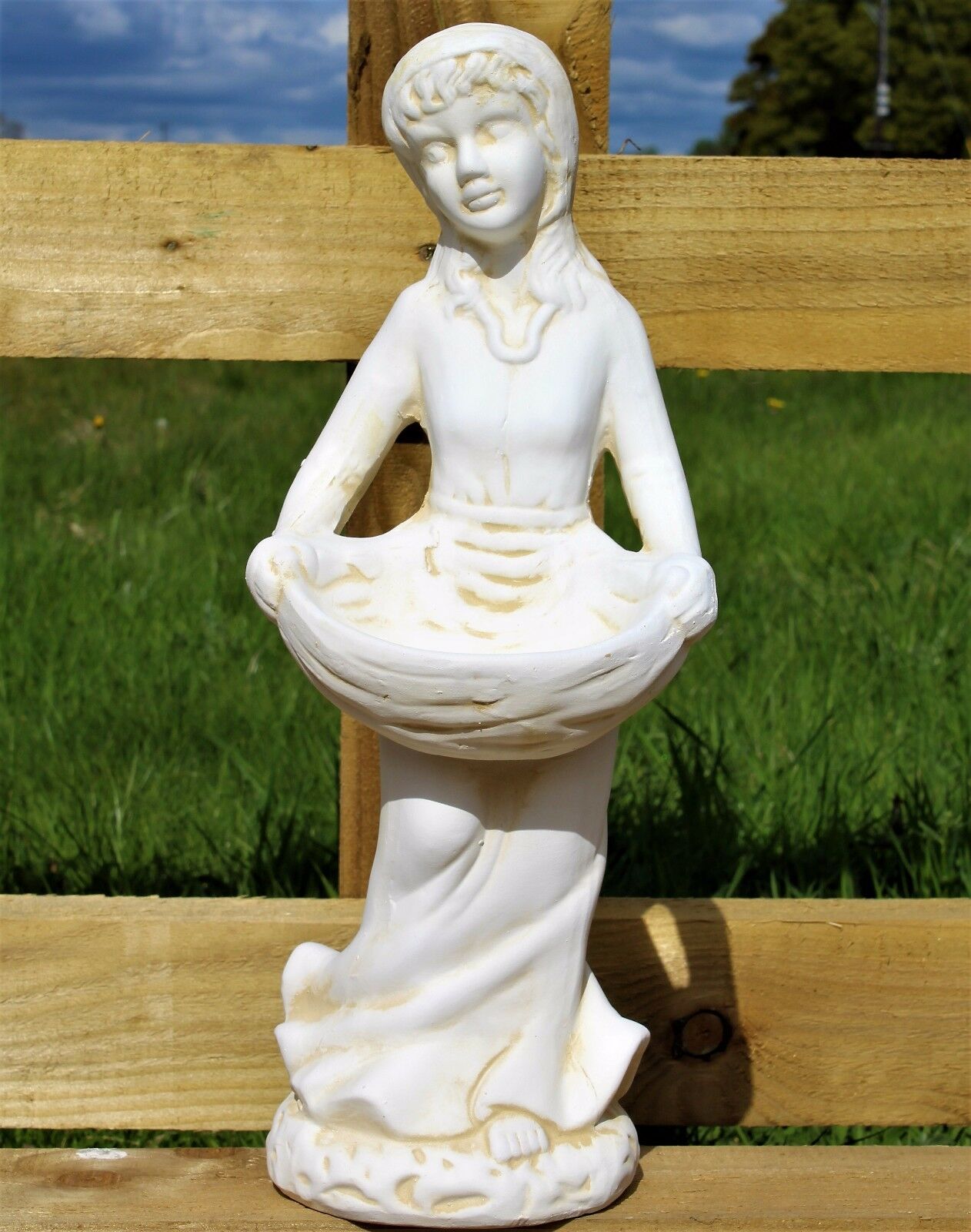 Antique White Large Lady Bird Bath Ornament