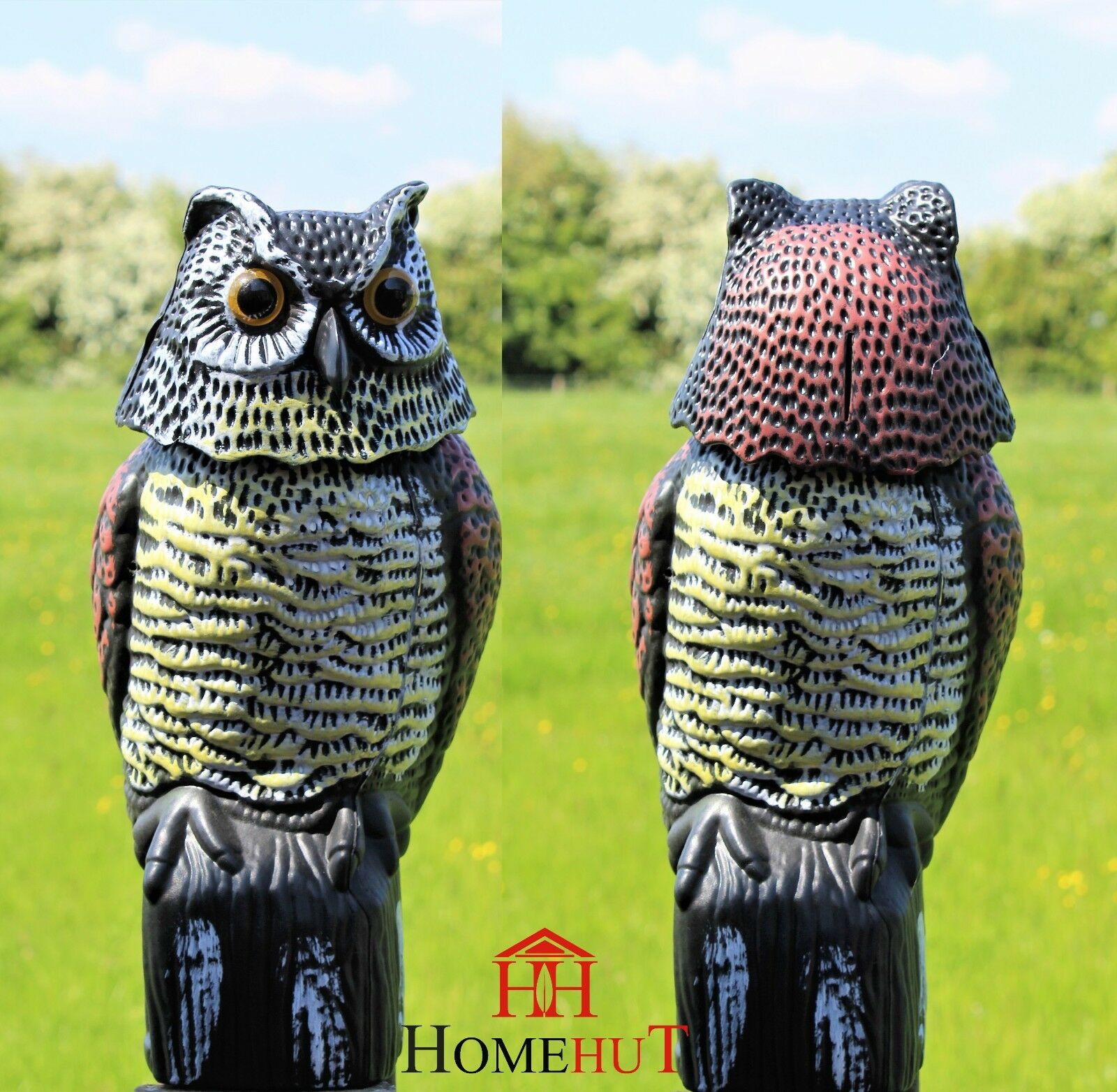 Protect your plants from unwanted birds and rodents with this amazing 'life like' owl. This extremely realistic and highly detailed owl can be placed in a suitable spot in your garden or wherever is necessary for your needs. The head rotates in the wind making it even more realistic. Fill with sand or stones to make it more stable but it can also be screwed down onto a surface. Can also be used as a decorative garden ornament for any owl lovers.