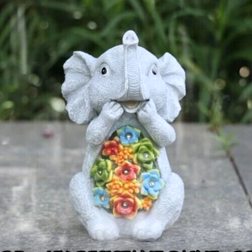 Welcome visitors to your garden with this unique solar powered succulent Elephant. This great garden feature can be installed anywhere outdoors or even Indoors. By day this is an ornament welcoming visitors to your garden and at night it becomes a solar light as it automatically turns on at dusk.