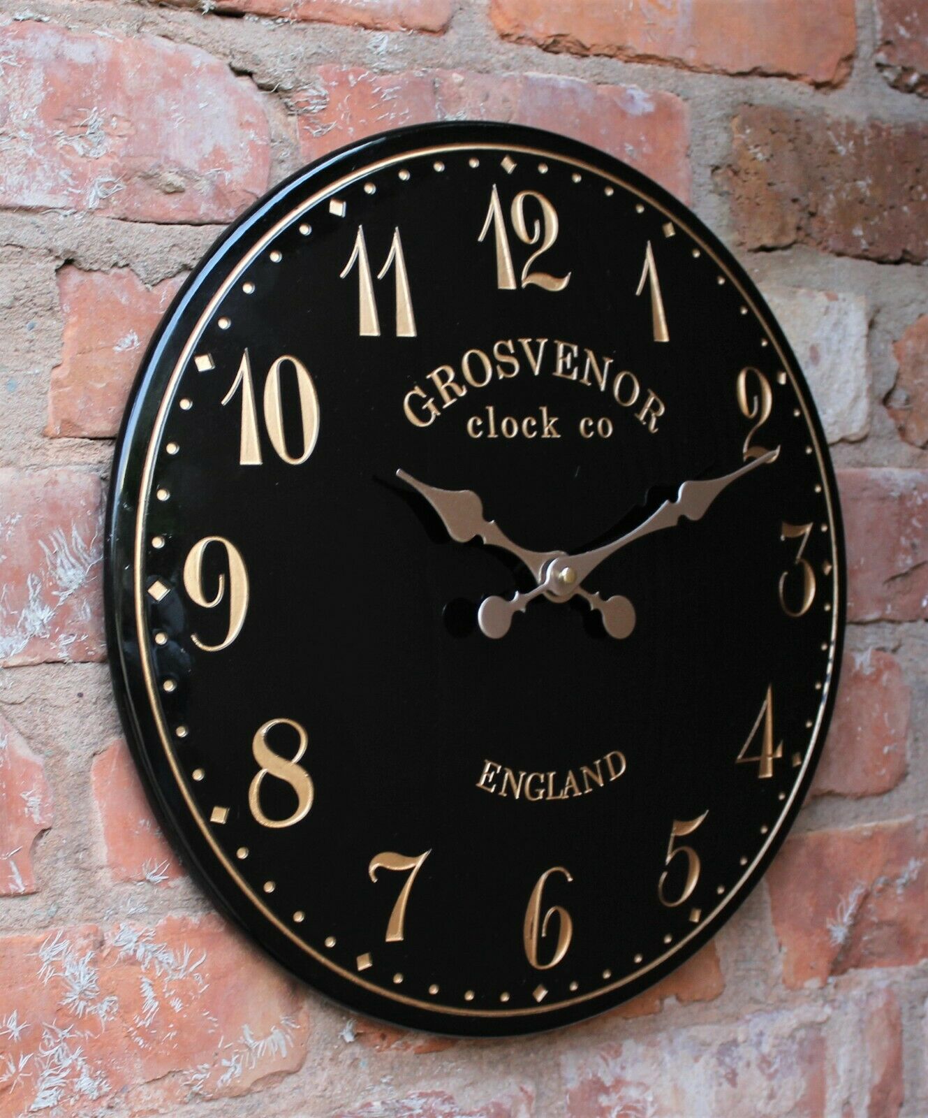 Our black and gold detailed outdoor wall clock is a lovely addition to any garden. Prepare your outer home for summer, making it the perfect garden experience. This stylish 15 inch 38 CM ARABIC numeral display is great for indoor or outdoor use as it is weather resistant tested. With a dark face and bold golden ARABIC numerals this piece will stand out and add a vintage atmosphere to any room inside or out. This clock would also make a fabulous house warming gift for a loved one, why not share your discovery!